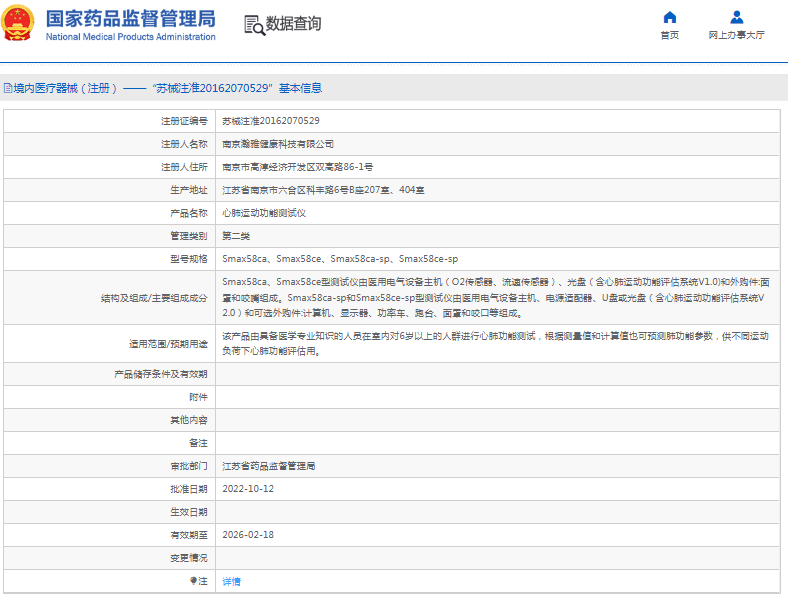 该产品由具备医学专业知识的人员在室内对6岁以上的人群进行心肺功能测试,根据测量值和计算值也可预测肺功能参数,供不同运动负荷下心肺功能评估用。