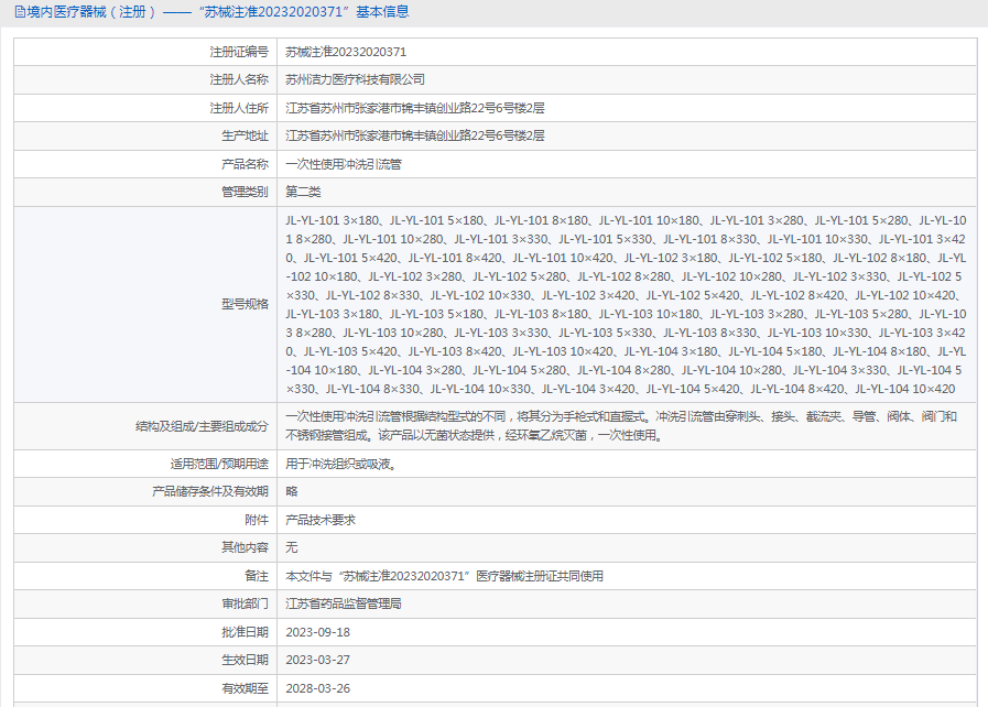 批准文号:苏械注准20232020371