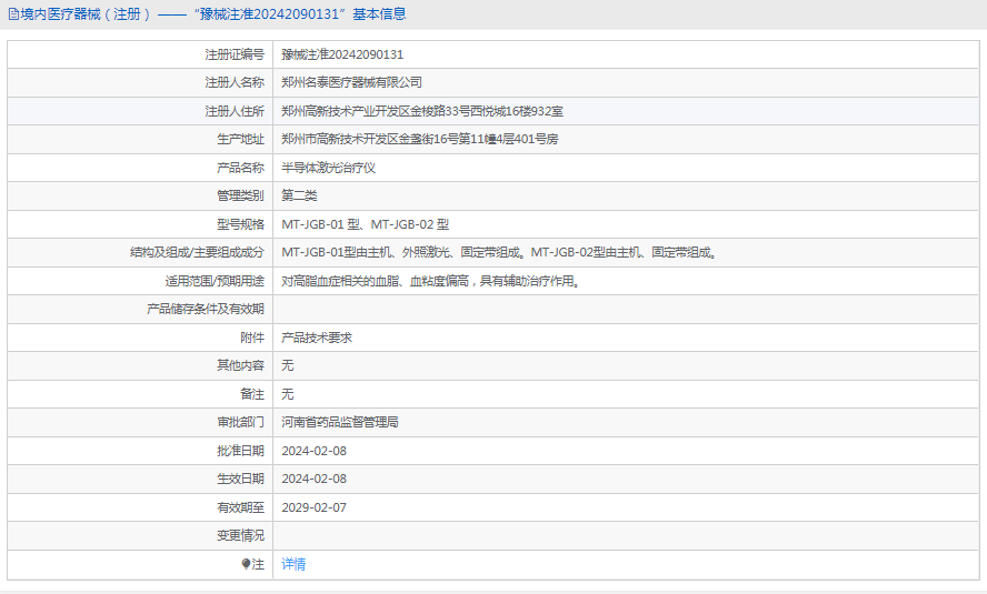 批准文号:豫械注准20242090131