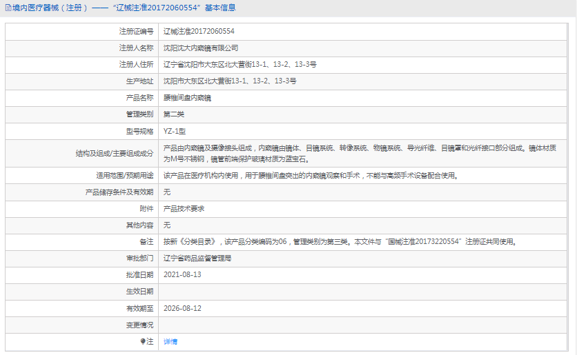 YZ-1型腰椎间盘内窥镜是由沈阳沈大内窥镜有限公司生产的***款医疗设备。以下是关于该产品的详细信息: