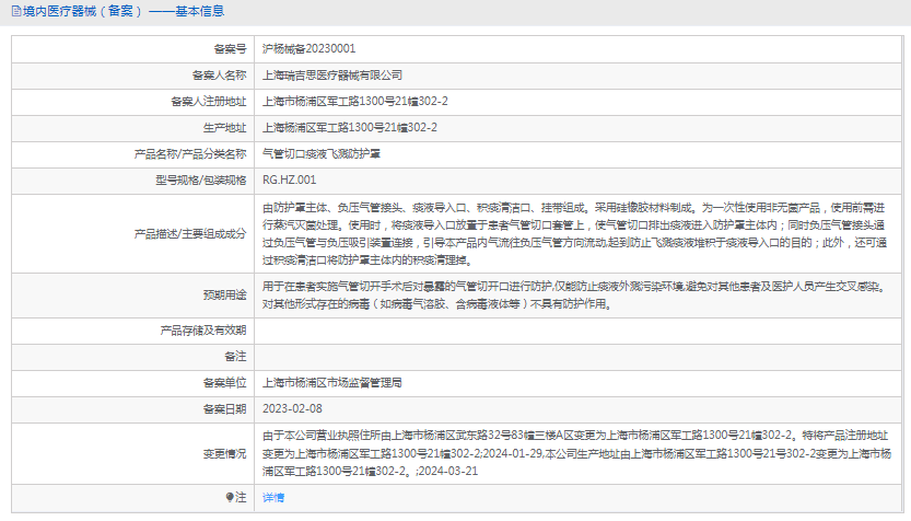 用于在患者实施气管切开手术后对暴露的气管切开口进行防护,仅能防止痰液外溅污染环境,避免对其他患者及医护人员产生交叉感染。对其他形式存在的病毒(如病毒气溶胶、含病毒液体等)不具有防护作用。