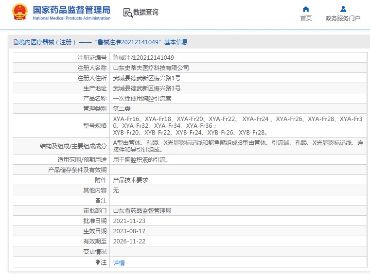 首页 > 导管/引流> 胸腔引流管> xya-fr16 一次性使用胸腔引流管