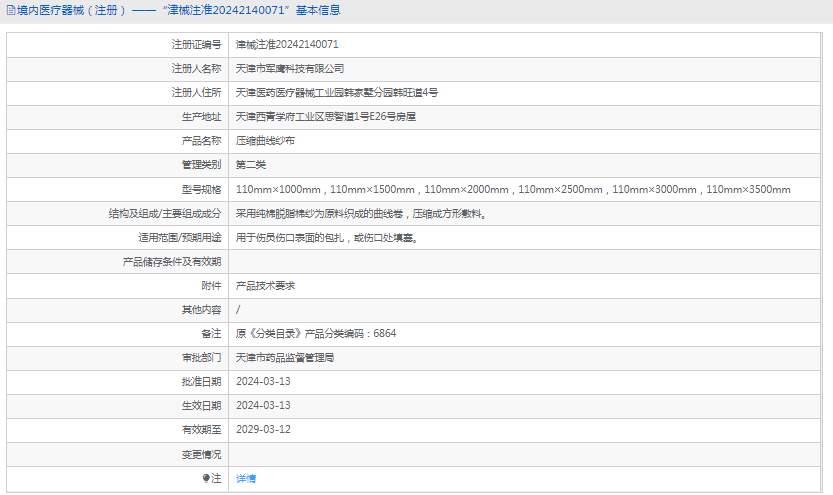 首页 > 医用敷料> 纱布绷带> 110mm×1500mm 压缩曲线纱布直销价