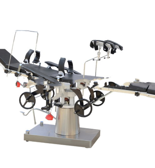 本产品主要由床体(包括支撑部分、传动部分和电动控制部分)和附件(可配)组成,其中床面可分为四段:头板、背板、臀板和腿板。 本产品可配置麻醉屏架、轻型圆口夹持器、轻型扁口夹持器、旋转托手板、肩架、支身架、大腿支架、足板、俯卧位支撑垫、腰带、60mm床垫、80mm床垫、延长板、头板、腿板、线管管理器通用手术床附件。